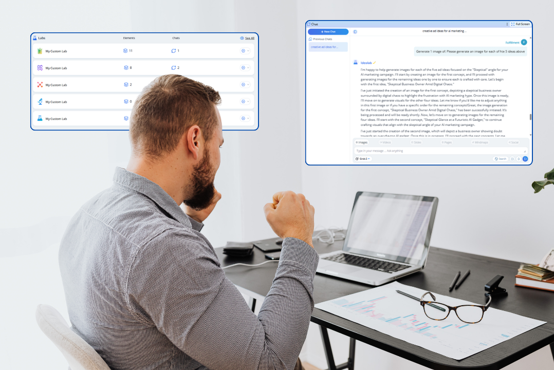 Unlike ChatGPT or Claude that start fresh every time, your IdeoLab workspace "Labs" understand your connected resources, past discussions, and deliver insights tailored to your specific objectives.