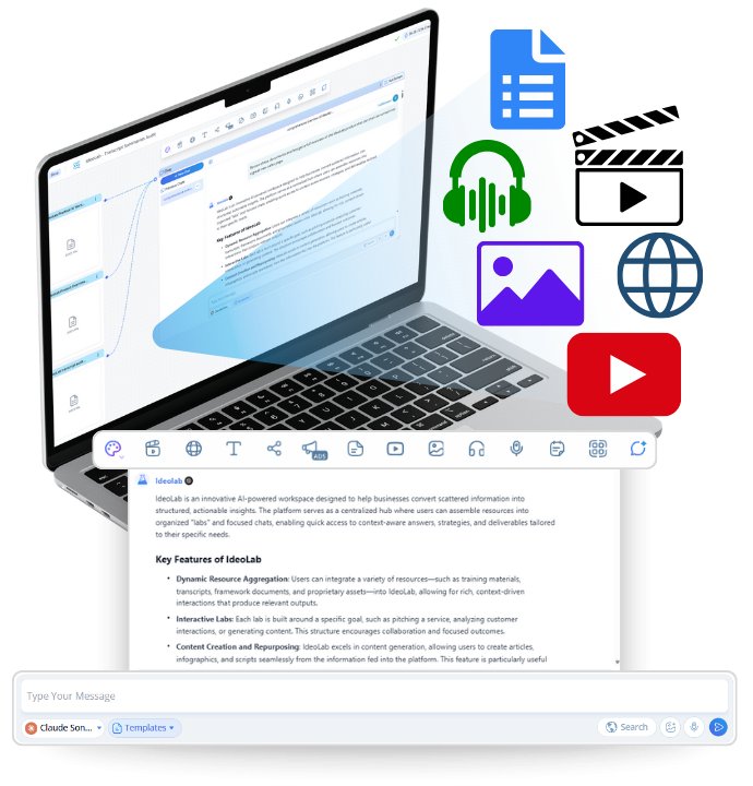 Drop in your content, calls, or notes and use IdeoLab to turn scattered information into clear insights, next steps, and ready-to-use guidance—built around your goals, not generic outputs.
