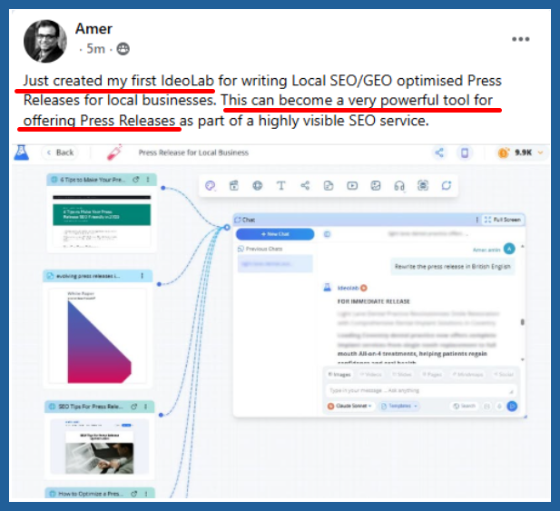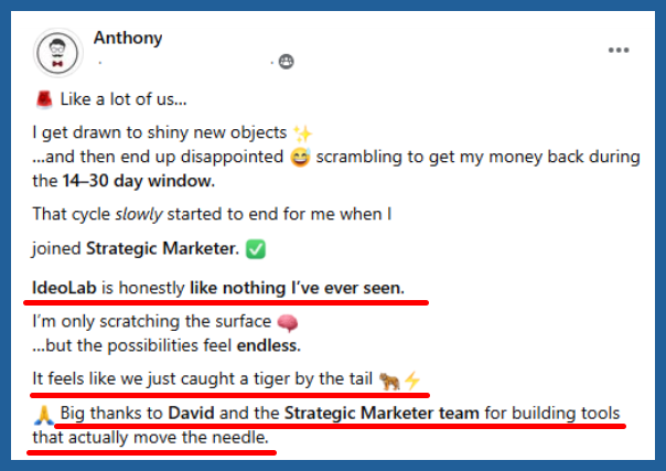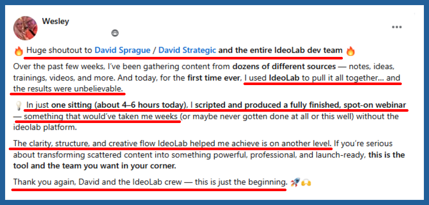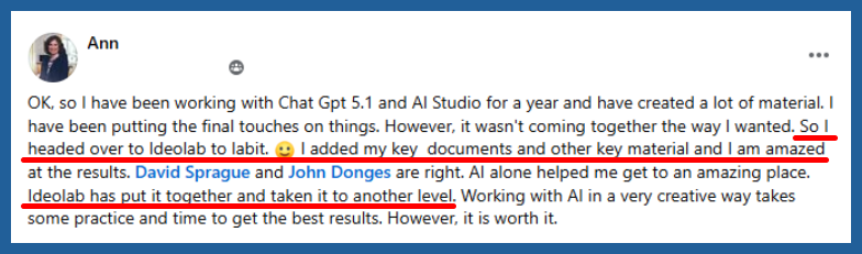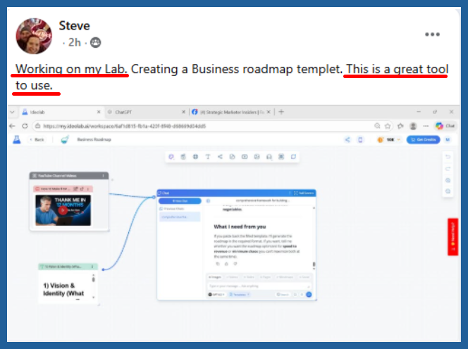 Stop juggling multiple tools and starting from scratch with every AI conversation. IdeoLab remembers your context, understands your business, and delivers the insights and content you need to win.